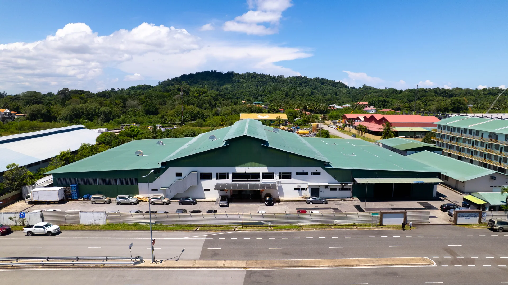 Located at Plot 34-36, Serasa Industrial Estate, Muara BT1128, Brunei Darussalam, our modern facility spans 3 acres with comprehensive logistics capabilities.